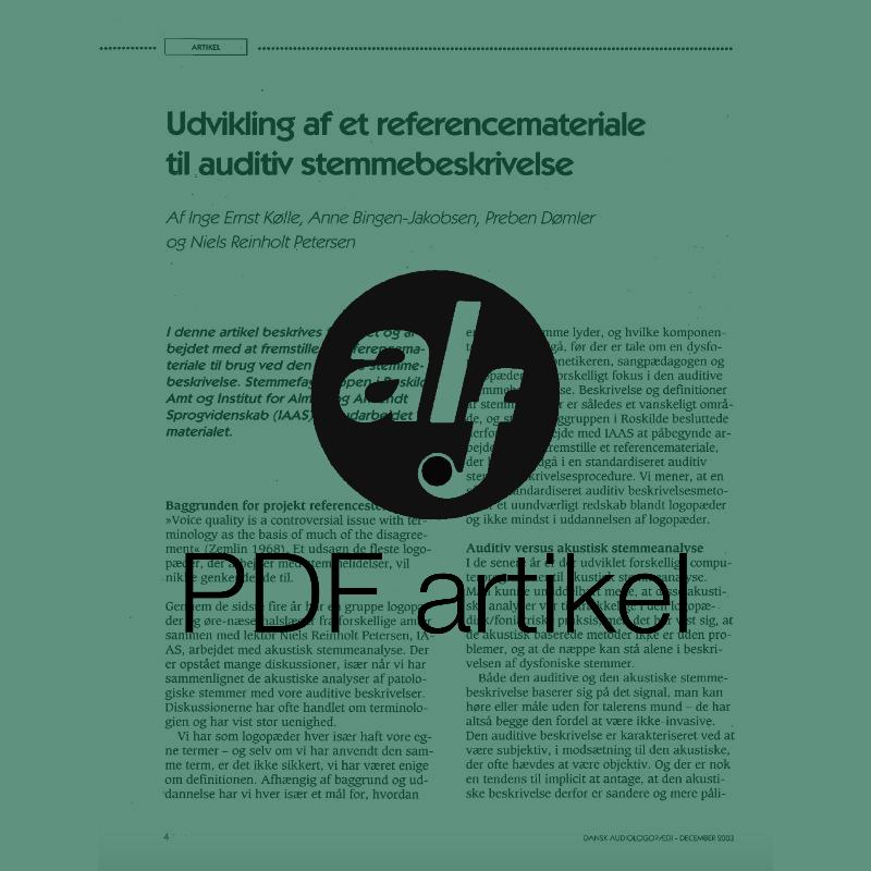 I denne artikel beskrives formålet og arbejdet med at fremstille et referencemateriale til brug ved den auditive stemmebeskrivelse. Stemmefaggruppen i Roskilde Amt og Institut for Almen og Anvendt Sprogvidenskab (IAAS) har udarbejdet materialet.